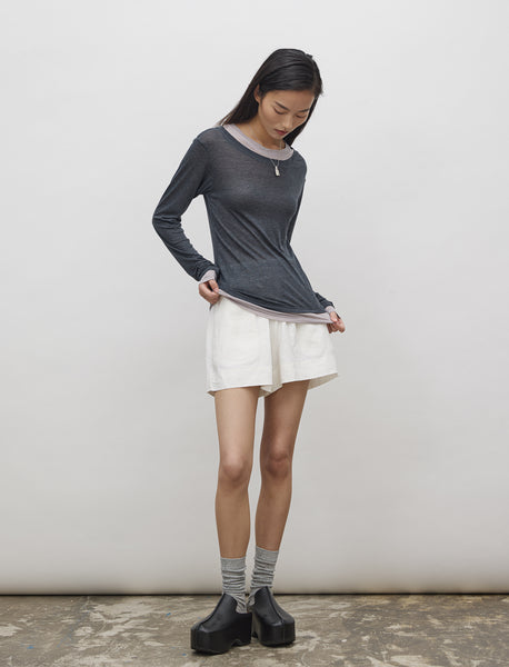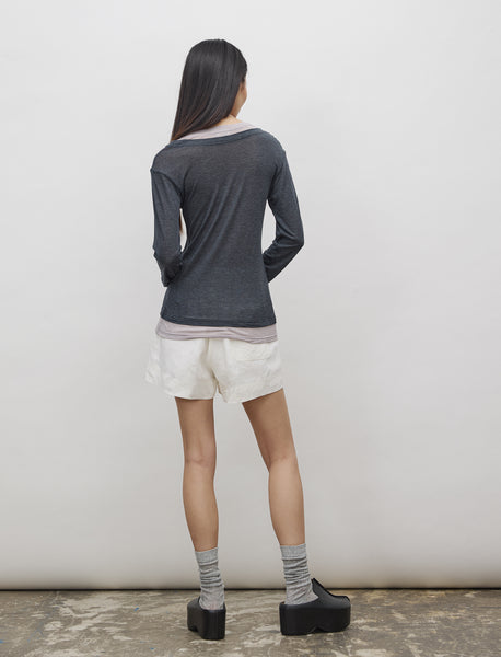 Double-layer Sheer Long Sleeve Top - Charcoal Blue/Taro